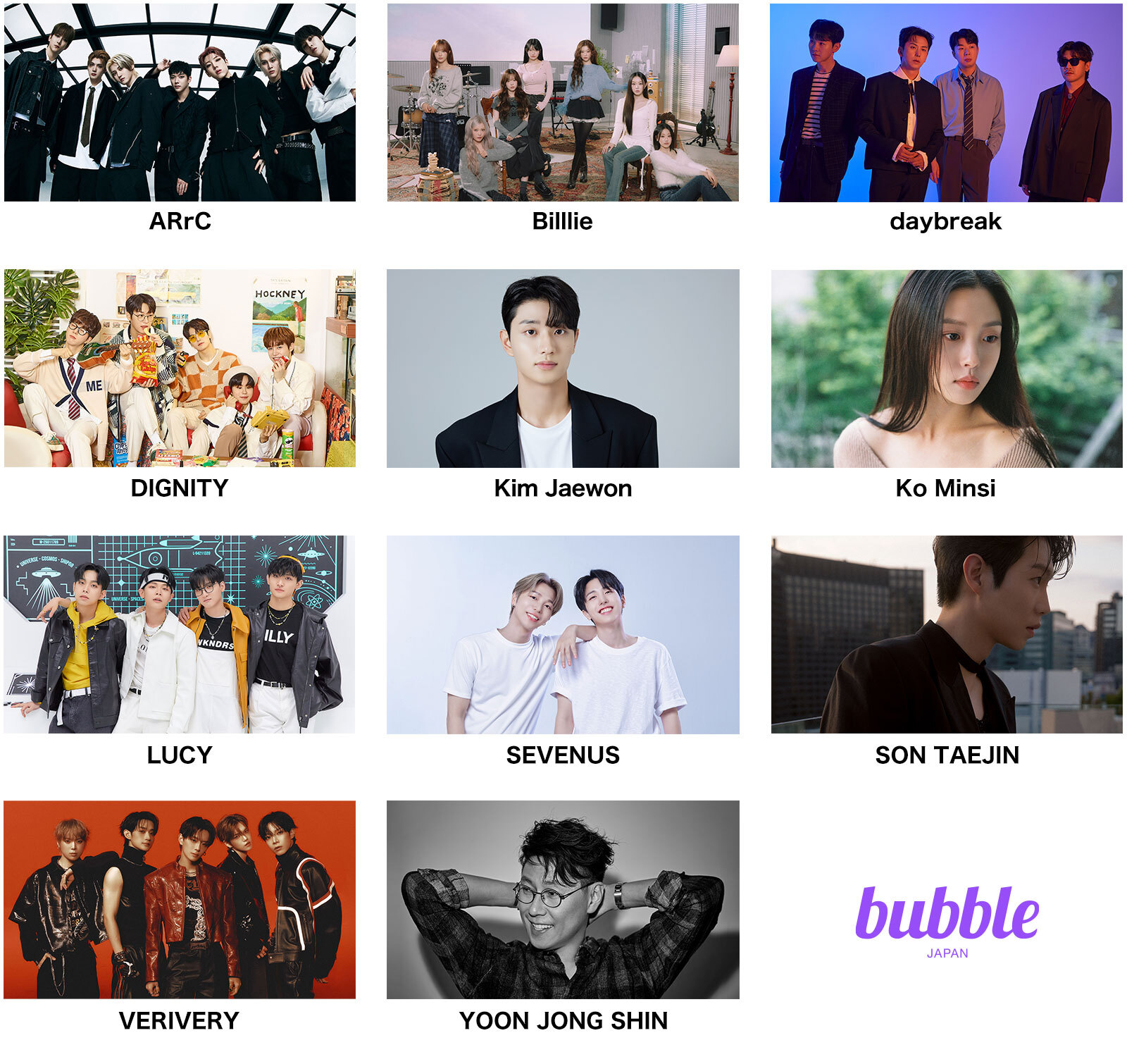 「bubble for JAPAN」に韓国アーティスト11組が新たに登場! Billlie、VERIVERY、LUCYらジャンルを超えた多彩なラインナップが集結